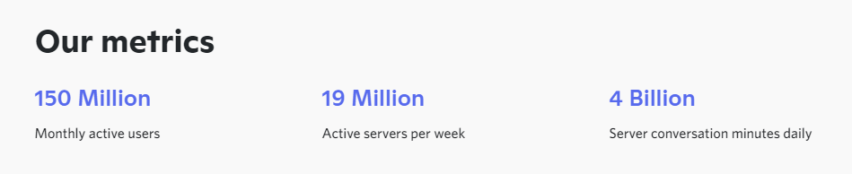 As of 2021, Discord has over 150 Million monthly active users, 19 Million Active servers per week, and over 400 Million registered users on its platform and it is currently running as a Freemium Model.