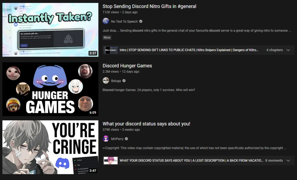 During the lockdown period, Discord becomes a shiny source for content creation and memes. It gave a boost to several YouTube creators in terms of Views and subscribers, this was indirectly helpful for Discord to grow. Some of these YouTube videos also have more than 10 Million views in each video.