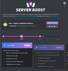 Discord ended their free game service with Nitro. Discord introduced Server Boosts, a way to benefit specific servers by purchasing a “boost” for it, with enough boosts granting various benefits for the users in that particular server. Each boost is a subscription costing $4.99 a month.